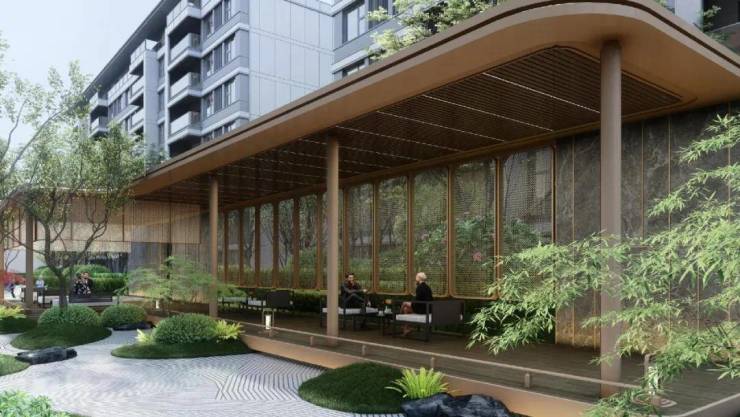 项目实行预定制,将花卉、树木、流水、山石、景墙编织成序曲言语,为健康保驾护航