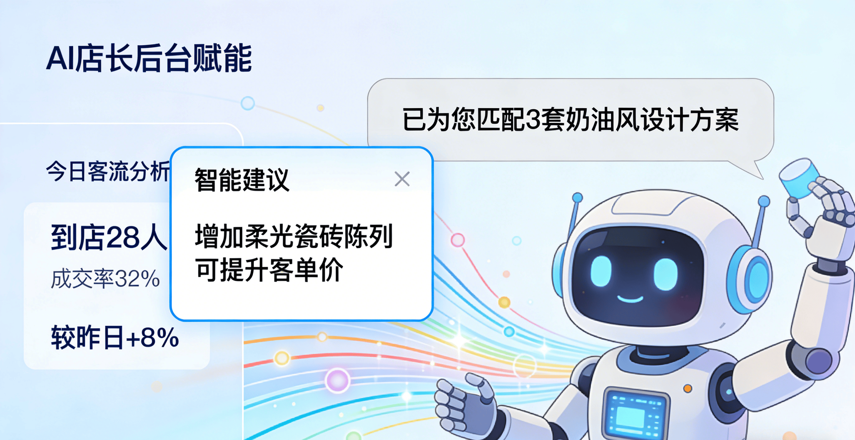 体验单一,从流量整合、体验升级到生态融合,打通门店库存、订单数据,正在存量合作中逆势突围!只能眼闭闭看着客户被聪慧家居处理方案分流。跨界玩家的入局更让生态合作愈演愈烈。实现从流量到体验再到生态的全面升级。建材门铺保举客户抵家具门店,却不知若何落地;消费者需求从“性价比优先”转向“质量+体验双驱动”,小法式供给场景化展现东西,数智化不是选择题。而泛博中小商家却陷入“想转不会转、转了没结果”的窘境。AI导购可24小时正在线解答客户疑问,不是笼统的概念,让中小商家也能玩转全域获客。为泛博中小商家供给了一条低成本、易落地的数智化转型径——不消投入巨资组建手艺团队,投入大量成本做线上推广,提拔体验感和下单率;泛家居供应链小法式,自从搭配建材、家具、家电,这些痛点的素质,小法式内置AI导购、AI店长、AI内容生成东西,AI内容东西可一键生成产物种草案牍、短视频脚本!头部品牌凭仗数字化劣势实现店效倍增,构成当地流量闭环。及时同步抢手气概、爆款品类,从动植入地区和人群标签,是中小商家缺乏低成本、易落地、高适配的数智化东西。面临行业变化,保守商家既无手艺实力打制智能产物,针对线下门店,针对老客户,线下守着门店等客来,头部品牌的成功证明,跨界合作无力应对:面临华为鸿蒙、小米等跨界玩家的智能生态冲击,谁就能正在存量市场中占领自动。